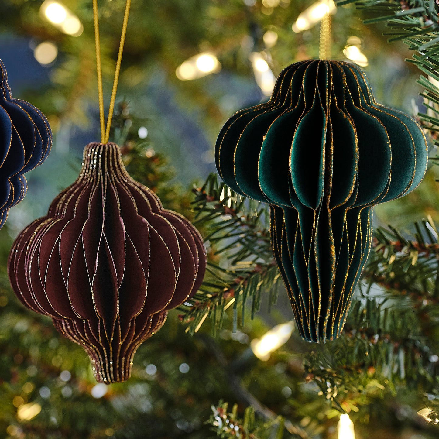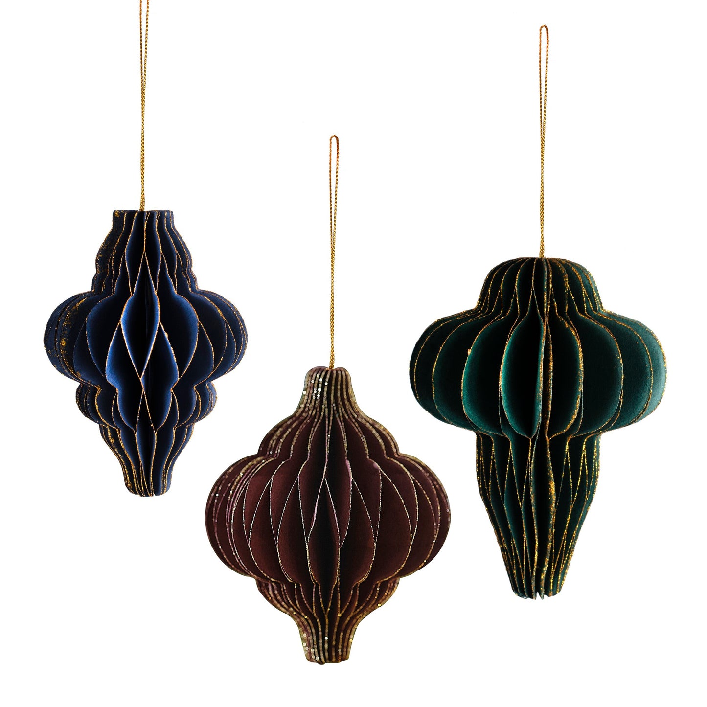 Glitter Edge Honeycomb Hanging Christmas Tree Decorations - Viseci ukrasi za jelku od papirnog saca sa sljokicama iz nove Velvet novogodisnje kolekcije Ginger Ray brenda .
