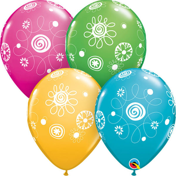 11"28 cm Scribble Circles & Flowers Latex Baloni