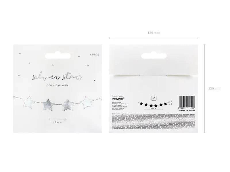 Srebrna dekorativna girlanda sa zvezdicama dužine 3,6 m — sjajan dodatak za rođendane, novogodišnje proslave, venčanja, dečije žurke i tematske evente. Stvara blistav i svečan ambijent i lako se kombinuje sa ostalim party dekoracijama.