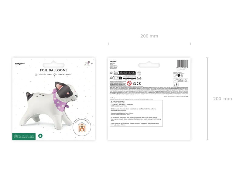 Stajaći folija balon u obliku buldoga, dimenzija 75 × 57 cm, u mix boja — zabavna i upečatljiva dekoracija za rođendane, dečije zabave, tematske proslave i foto‑zone. Ovaj balon stoji samostalno i donosi vedar i razigran izgled svakom party prostoru.