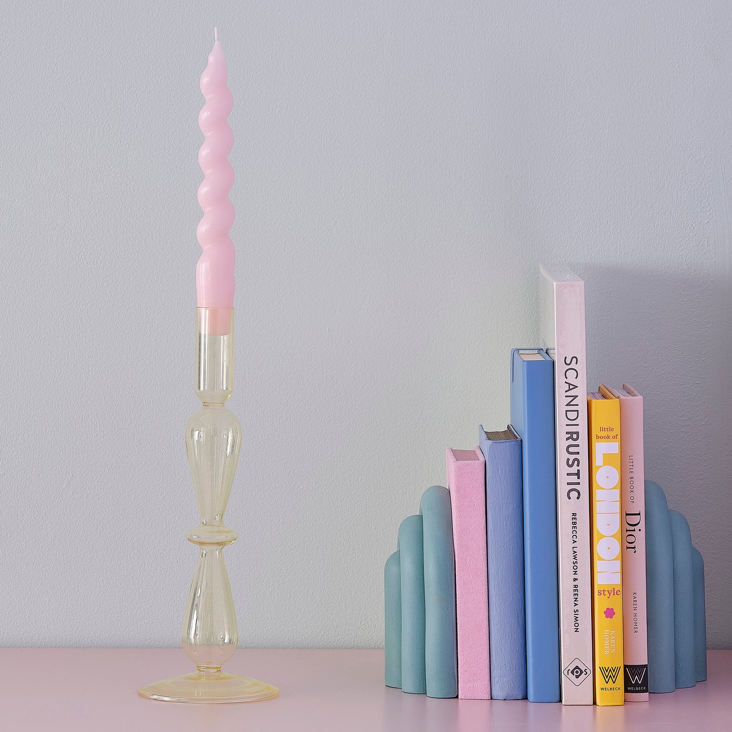 Yellow Glass Bubble Dinner Candle Holder - Svecnjak od zutok stakla